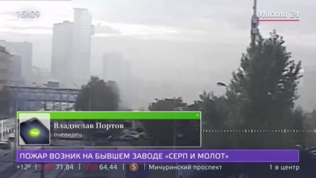 Очевидец рассказал о пожаре на бывшем заводе "Серп и молот"