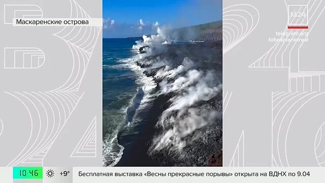 Новый участок суши образовался из-за извержения вулкана Питон-де-ла-Фурнез