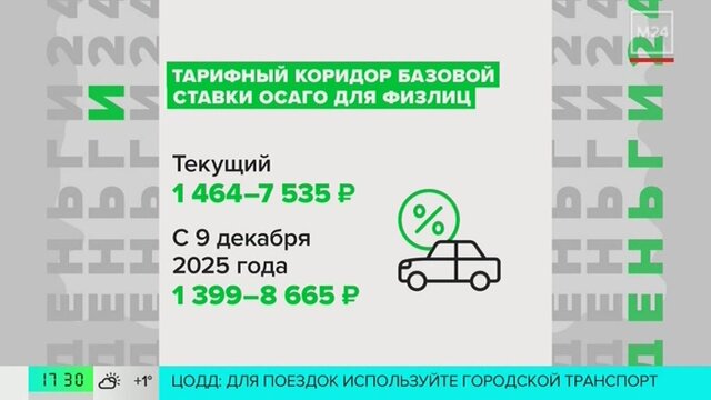 "Деньги 24": Центробанк расширит тарифный коридор по ОСАГО с 9 декабря