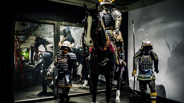 На выставке "Самураи. 47 ронинов" показали, как надеваются доспехи
