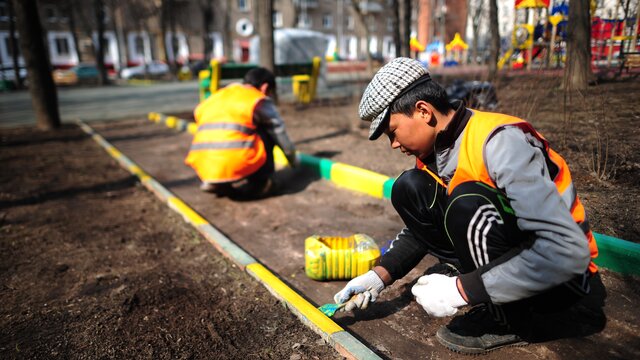 Департамент ЖКХ объяснил, почему бордюры красят в желто-зеленые цвета