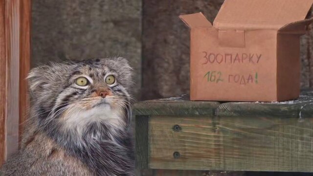 Манул Тимофей получил коробку с угощением в день рождения Московского зоопарка