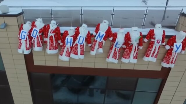 28 фигур Дедов Морозов с мечами вывесили жильцы "Дубровской слободы"