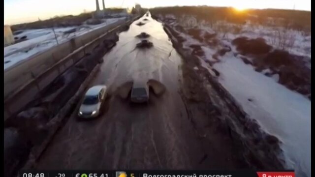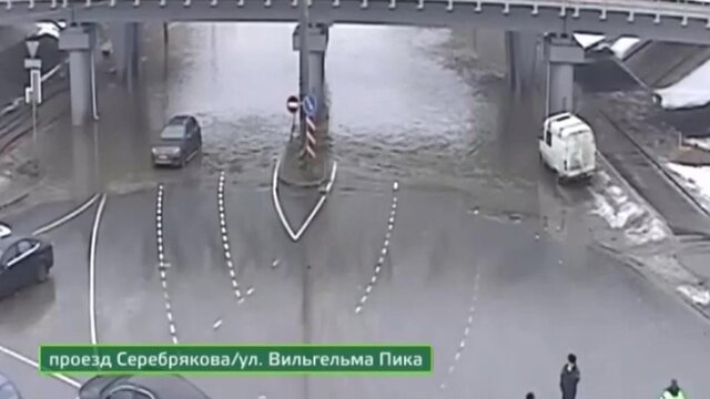 Из-за разлива воды на дороге в Новой Москве застряли несколько машин