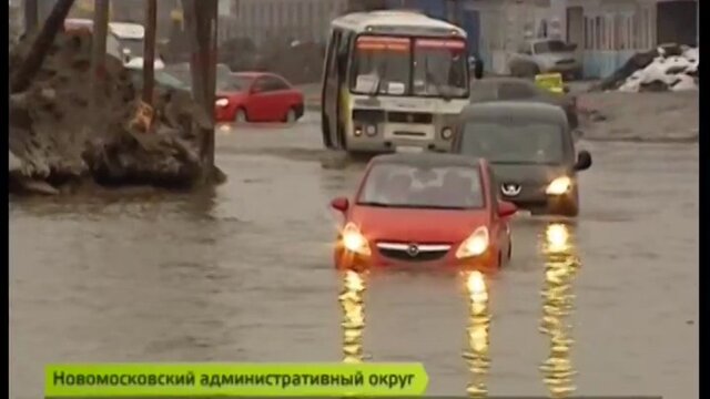 В новой Москве затопило дорогу между Киевским и Калужским шоссе