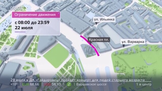 Движение на нескольких улицах в центре Москвы ограничат 23 июля