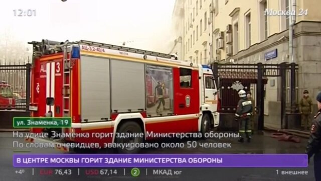 Пожару в здании Минобороны присвоен высший уровень опасности