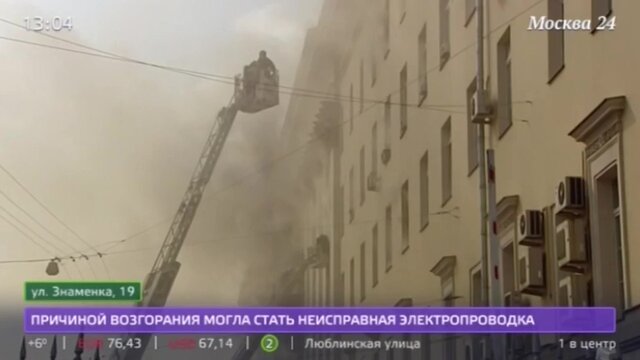При тушении здания Минобороны на Знаменке пострадал пожарный