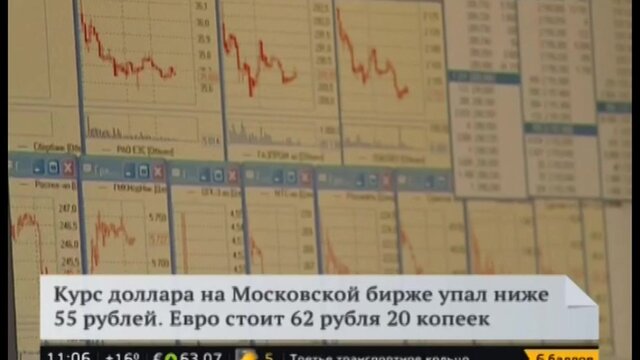 На Московской бирже рубль вырос по отношению к евро на 90 копеек