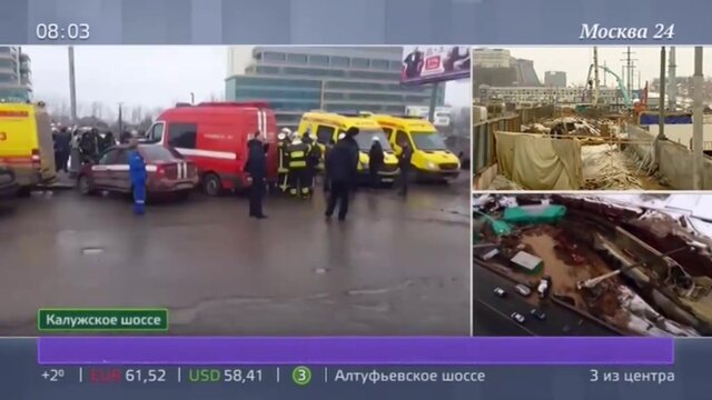 Телеканал "Москва 24" показал кадры с места обрушения тоннеля в ТиНАО