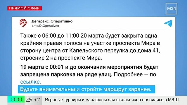 Движение транспорта перекроют в центре Москвы 19 и 20 марта из-за мероприятий