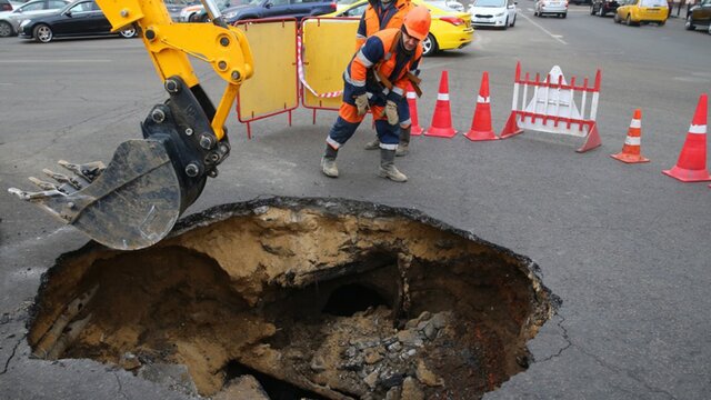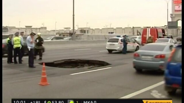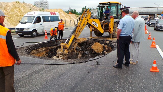 Провал грунта на МКАД произошел из-за дождей и сброса воды