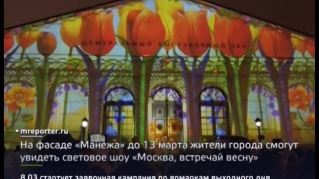 На фасад Манежа показали световое шоу "Москва, встречай весну"