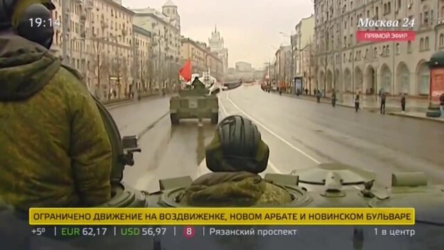 Ракетные комплексы и танки участвуют в репетиции парада в Москве