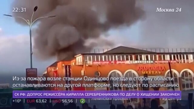В Одинцовском районе Подмосковья горит склад стройматериалов