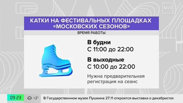 Катки на фестивальных площадках "Московских сезонов" откроются 1 декабря