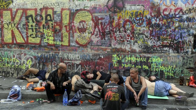 Неизвестные пытались закрасить надпись "Цой жив" на Арбате