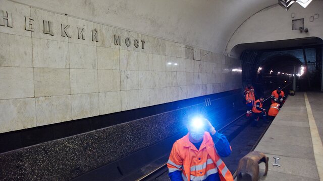 Ремонтные работы идут на центральном участке фиолетовой ветки метро