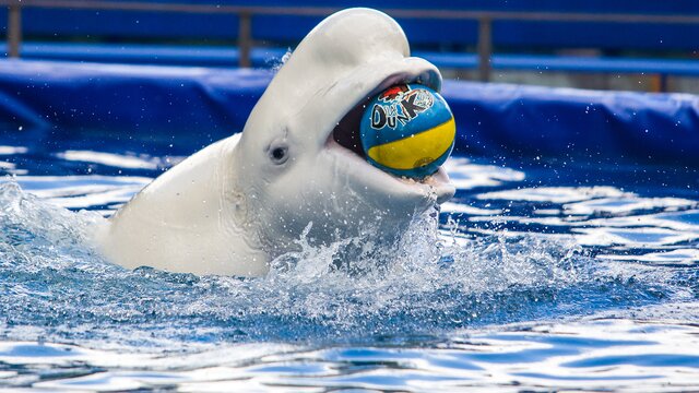 Два дельфина и белуха обживаются в бассейне Измайловского парка