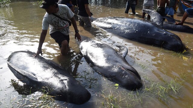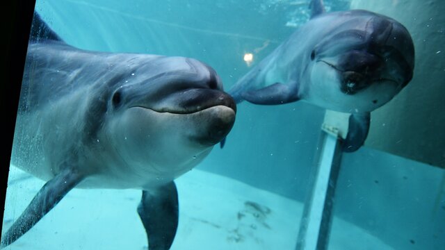 Два дельфина и белуха обживаются в бассейне Измайловского парка