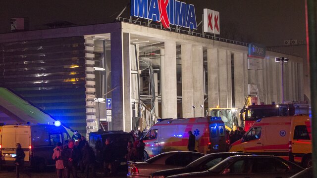 Работы на месте обрушения супермаркета в Риге приостановлены