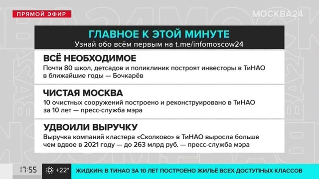 За это время в ТиНАО построили и реконструировали сотни дорог, 8 станций метро, сдали миллионы квадратных метров жилья, ввели десятки объектов социальной инфраструктуры и создали сотни тысяч рабочих мест.