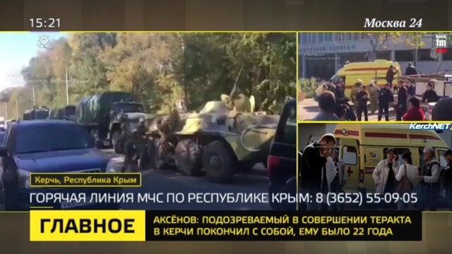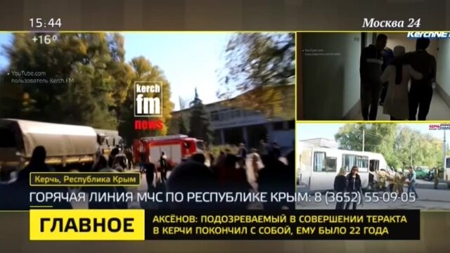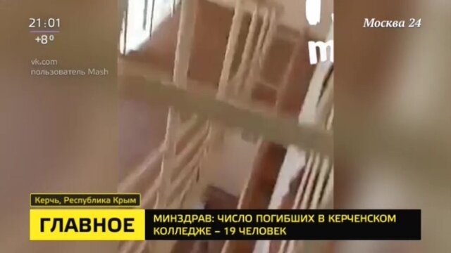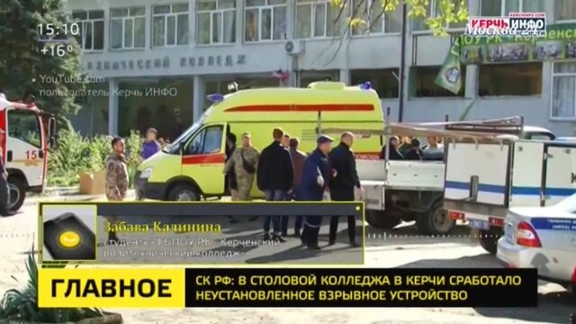 В среду, 17 октября, в политехническом колледже в Керчи произошел взрыв. По информации Центра медицины катастроф, в результате ЧП погибли 19 человек. Количество раненых, по разным Минздрава, 49 человек. Национальный антитеррористический комитет заявил, что взрыв в колледже произошел от неустановленного объекта. Следственный комитет возбудил уголовное дело по статье о теракте, позднее дело было переквалифицировано на убийство двух и более лиц.