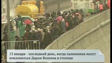 Накануне в очереди стояли порядка двадцати тысяч человек. Она растянулась до метро "Фрунзенская". Однако время ожидания сократилось с 12 до 7 часов. При этом организаторы просят людей одеваться теплее, рассчитывать силы и время, не занимать очередь после шести вечера, а главное - понимать, зачем именно они пришли.