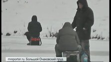 Большой Очаковский пруд еще не успел покрыться льдом, а рыбаки уже вышли на промысел. Из-за плюсовой температуры около берега образовались огромные полыньи, но это никого не пугает. Около десятка человек рыбачат на водоеме, несмотря на опасность. При этом люди не обращают внимания на плакаты, запрещающие выходить на лед.