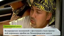 На Ленинградском шоссе в сторону столицы образовались огромные пробки. Это возвращаются домой зрители фестиваля "Нашествие".