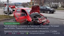 Три автомобиля столкнулись на Павелецкой набережной. От удара одна из машин перевернулась на крышу, пострадал один человек, передает телеканал Москва 24. Был это водитель или пассажир, пока не сообщается.