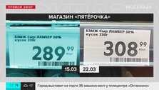 Телеканал Москва 24 запустил новую рубрику "Ценные кадры". Каждую неделю для жителей столицы будут отслеживать, как меняется стоимость тех или иных продуктов в магазинах. В этот раз были проанализированы цены на сыр "Ламбер" 230 граммов.
