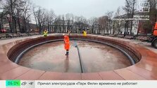 Фонтанные комплексы начали промывать на Пушкинской площади и в Новопушкинском сквере. Сначала их чистят специальными щетками, потом тщательно обрабатывают особым средством чаши, парапеты и наружные инженерные коммуникации.