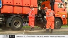 Столица продолжает готовится ко Дню города. Так, на Фрунзенской набережной уже началась генеральная уборка. Работы продлятся двое суток. За это время специалисты отмоют сходы к воде и гранитные парапеты.