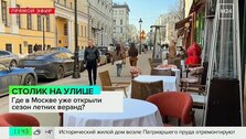 Сезон летних веранд в Москве открыли раньше времени. Обычно рестораны и кафе выставляют столы и стулья на улицу в начале апреля. Однако солнечная погода сдвинула сроки.