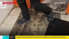 ГородВ столичном супермаркете о портрет Сергея Есенина вытирают ноги