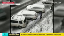 Телезрители прислали видео, как коммунальщики убирают снег в их дворах. Эти кадры сняты жительницей в районе Ходынского поля.