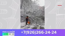 Телезрители прислали кадры из района Ивановское в Москве. Там с корнем вырвало несколько деревьев. Одно из них упало на автомобиль. Зрители могут прислать видео с погодой в мессенджеры.