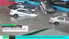 Большое скопление воды образовалось на Клязьминской улице. Подробнее – в эфире телеканала Москва 24.