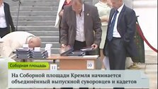 С утра на Соборной площади Московского Кремля начался объединенный выпускной суворовцев и кадетов. Подразделений много - тут собрались воспитанники Московского, Тверского военных училищ, столичного военно-музыкального училища и Пансиона воспитанниц Министерства обороны. Аттестаты получат более 200 выпускников.