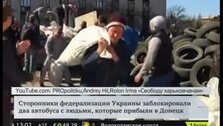 Ранее митингующие заблокировали два автобуса с людьми, которые прибыли в Донецк для разгона митингов. Об этом сообщил замруководителя народного ополчения Донбасса Сергей Цыплаков. По его данным, в городе находятся сотни сторонников новой киевской власти, но протестующие готовы дать им отпор. Киев направляет на юго-восток Украины пехоту, а также танки и бронемашины. Сторонники федерализации возводят баррикады из автомобильных покрышек и мешков с песком. В Донецке протестующие готовятся к штурму.
