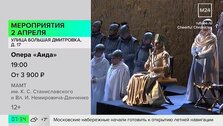 В Музыкальном театре имени Станиславского и Немировича-Данченко 2 апреля покажут оперу "Аида". Это история о любовном треугольнике: две женщины любят одного мужчину. Политика, война, религия и интриги становятся фоном для действия. Начало в 19:00.