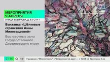 Выставка "Шелковые странствия Анны Милосердовой" пройдет в залах Дарвиновского музея на улице Вавилова в Москве 9 апреля. На ней представлено около 50 произведений в технике росписи по шелку.