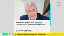 Мэр МосквыСобянин сообщил, что 23 февраля парковка в Москве будет бесплатной