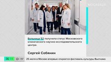 Мэр МосквыСобянин сообщил, что ГКБ № 52 получила статус Московского клинического научного центра