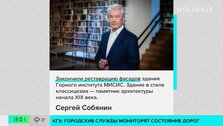 Мэр МосквыЗавершена реставрация фасадов здания Горного института МИСиС