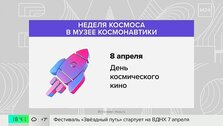 10 апреля покажут фильм "Я из Музея космонавтики", а 12 апреля состоится проект "Собери космическую карту России".