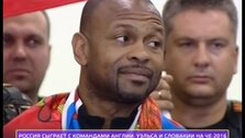 В эти минуты на "Арене Легенд" идут разогревочные бои. Публика уже практически заполнила зал в предвкушении главного боя вечера. Им станет поединок Роя Джонса и Энцо Макаринелли. Одна из трибун, 500 мест, полностью занята жителями подмосковного Одинцова, где сейчас прописан легендарный боксер. Рой Джонс получил российское гражданство этой осенью.