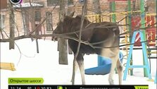 Во дворе жилого дома на Открытом шоссе гуляет семейство лосей. Чтобы прийти на детскую площадку - животные прошли несколько кварталов.