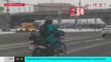 Москвичи сняли на видео байкера, который в -17 градусов решил выехать в город на мотоцикле. Очевидцы отметили зимнюю экипировку водителя – непродуваемый комбинезон и шлем.